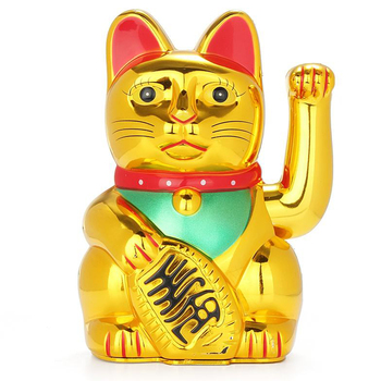 プラスチックマネキネコ磁器置物ギフトゴールド手を振る5インチの幸運の猫